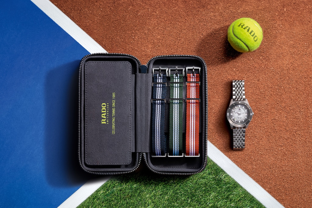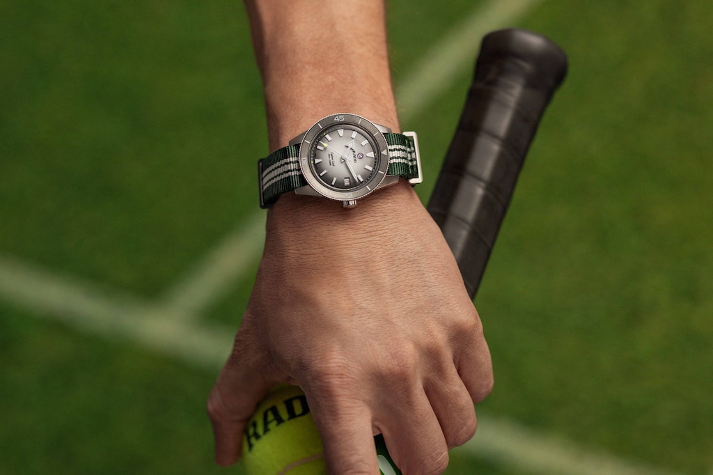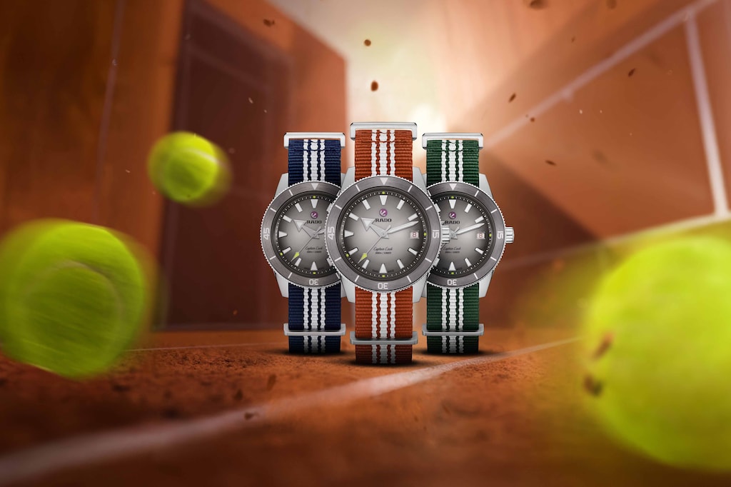 為慶祝網球40週年,這款Captain Cook庫克船長限量版腕錶融合了精準、風格與運動精神。限量發行1985只,腕錶配備39毫米不鏽鋼錶殼、電漿陶瓷錶圈,搭配由釕色漸變至白色的錶盤,點綴醒目的白色Super-LumiNova®夜光標記。秒針尖端與錶盤上的四個圓點採用深黃色Super-LumiNova®,呼應新網球的鮮明色彩。圓點位於15、30、40與12點位置,象徵網球經典計分方式。腕錶配有不鏽鋼錶帶及三條織物錶帶(綠、藍、橙三色),適配所有比賽場地。憑藉EasyClip輕鬆快拆系統,錶帶更換僅需幾秒。