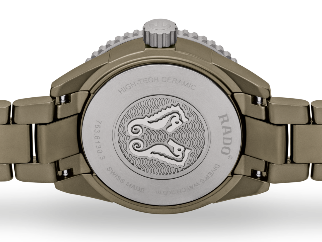 Captain Cook庫克船長高科技陶瓷潛水腕錶的防水性能經ISO 6425認證,深達300米。指針與刻度覆有Super-LumiNova®夜光塗層,與啞光橄欖綠色錶盤形成鮮明對比,確保佩戴者能夠輕鬆讀取時間。整體式構造錶殼直徑43毫米,由啞光橄欖綠色高科技陶瓷製成,旋轉錶圈則採用拋光硬化精鋼材質。腕錶搭載Rado R763自動機芯,較標準精準度測試要求超出整整五分,動力儲存長達80小時。這一款式搭配啞光橄欖綠色高科技陶瓷錶鏈。無論您的探索領域為何,您的Captain Cook庫克船長高科技陶瓷潛水腕錶都將證明它是個可靠而堅韌,值得長年同行的夥伴。