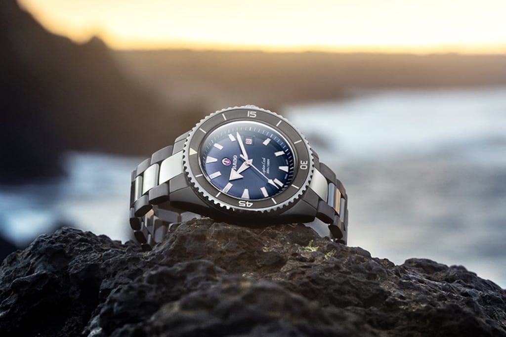 Captain Cook庫克船長高科技陶瓷潛水腕錶的防水性能經ISO 6425認證,深達300米。指針與刻度覆有Super-LumiNova®夜光塗層,與藍色太陽紋飾漆面拋光錶盤形成鮮明對比,確保佩戴者能夠輕鬆讀取時間。整體式構造錶殼直徑43毫米,由啞光等離子高科技陶瓷製成,旋轉錶圈則採用拋光硬化精鋼材質。腕錶搭載Rado R763自動機芯,較標準精準度測試要求超出整整五分,動力儲存長達80小時。這一款式搭配拋光等離子高科技陶瓷錶鏈。無論您的探索領域為何,您的Captain Cook庫克船長高科技陶瓷潛水腕錶都將證明它是個可靠而堅韌,值得長年同行的夥伴。
