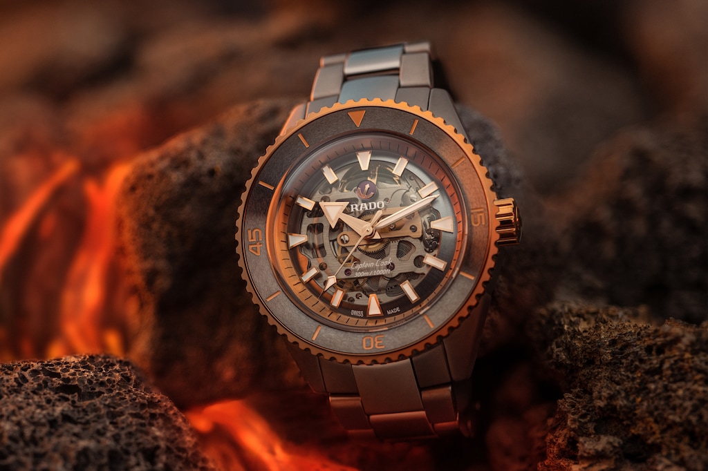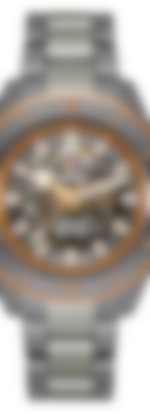Captain Cook庫克船長高科技陶瓷鏤空腕錶搭載創新型R808機芯,對比鮮明的設計、頂尖製錶技藝,以及巧妙的幾何形狀令人嘆為觀止。愛錶人士可以清楚鑑賞各個零件的運轉。腕錶搭載高度可靠的防磁NivachronTM游絲,且在五個方位進行了全面測試,並提供長達80小時的動力儲存。做工精湛的啞光飾面整體式構造錶殼由環形拉絲等離子高科技陶瓷錶圈襯片構成,與錶殼和外部錶鏈的色調相輝映。在可旋轉錶圈內,溫暖明亮的玫瑰金色時標與盒形雙面防反光藍寶石水晶錶鏡形成鮮明對比。錶盤採簡約的設計風格,指針覆有白色Super-LumiNova®夜光塗層,以提高光線不足時的可讀性。