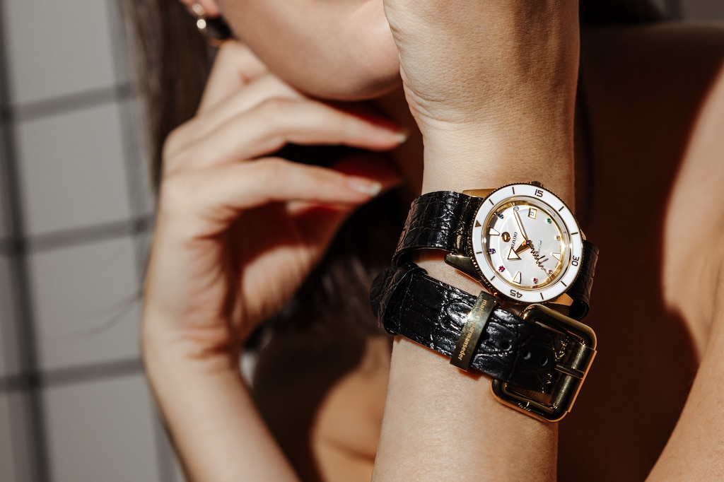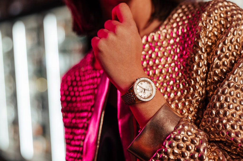 Rado瑞士雷達表Captain Cook庫克船長腕錶Marina Hoermanseder合作款「心跳」,已經是品牌與Marina Hoermanseder攜手推出的第二款特別版合作腕錶。這位屢獲大獎的奧地利時裝設計師,在演藝圈享有盛名,曾為眾多名人設計過服裝。如今這款與眾不同的女士腕錶,採用黃金色的錶殼和風格裝飾,搭配柔美的白色高科技陶瓷錶圈,以及鑲嵌了八顆彩虹石的錶盤。黃金色秒針擁有Marina獨有的心跳標誌形狀。 這款37毫米的腕錶配備兩條皮革錶帶,其中一條在雙倍長度且印製鱷魚紋壓花的小牛皮錶帶上,運用了設計師經典錶扣。腕錶配有品牌黑色錶袋,以供收納。