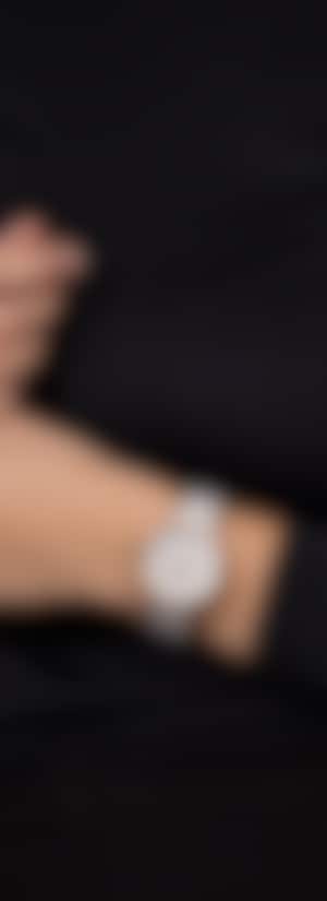親身體驗Centrix晶萃系列「Super Jubilé」腕錶,感受藝術美學與精緻設計的和諧交融。35毫米玫瑰金色PVD塗層精鋼錶殼,玫瑰金色PVD塗層精鋼錶圈鑲嵌60顆淨度VS-SI、足瓣切割的頂級威塞爾頓鑽石,搭配雙面防反光塗層的弧形藍寶石水晶錶鏡,確保讀時清晰無瑕。透過藍寶石水晶底蓋,可盡情欣賞腕錶之心的律動:精心調整的R763型自動機芯,經五個方位精密調節,搭載Nivachron™抗磁游絲,提供卓越的精準度與令人驚嘆的80小時動力儲存。 白色珍珠母貝錶盤鑲嵌11顆淨度VS-SI、足瓣切割的頂級威塞爾頓鑽石時標,6點鐘位置設有日期窗口,盡顯永恆典雅之美。經過精心調整的錶耳,搭配白色高科技陶瓷中央鏈節的拋光玫瑰金色PVD塗層精鋼錶鏈,並以三折式精鋼錶扣固定,使這款經典時計的整體外觀更臻完美。