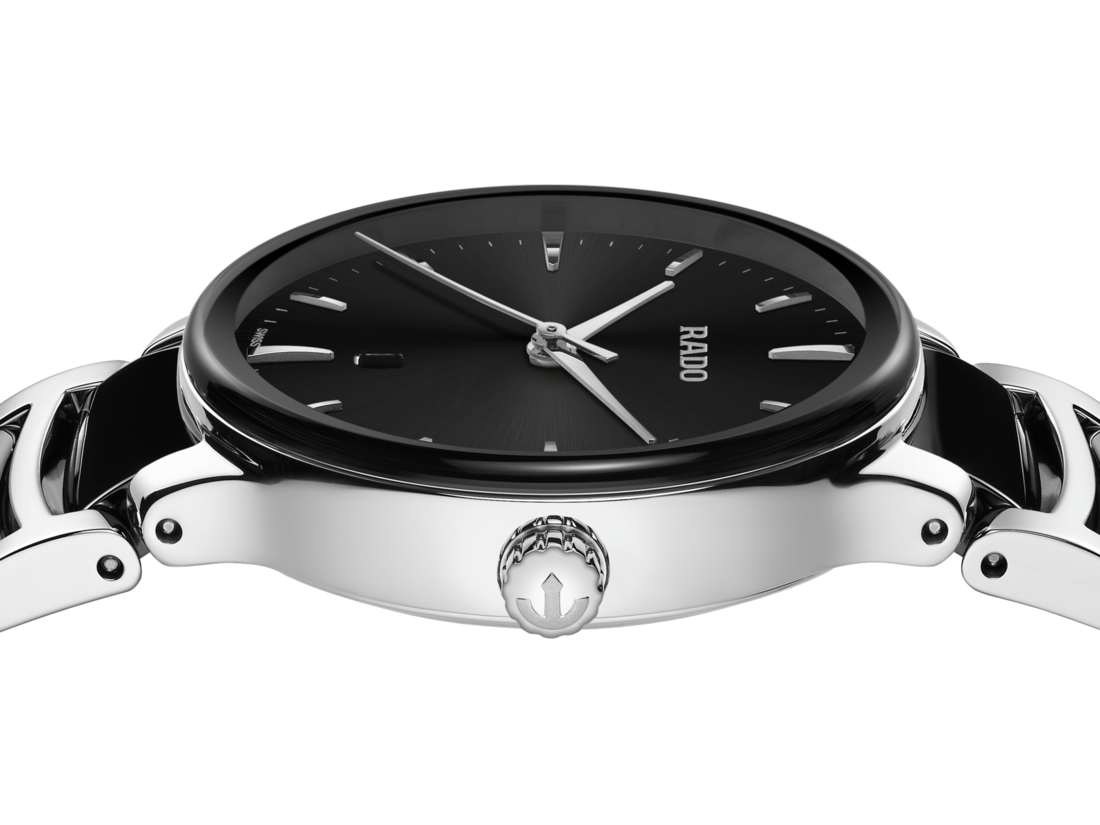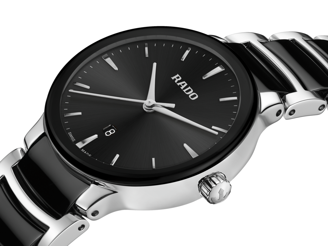經典Centrix晶萃系列石英腕錶不僅在技術上進行調整,亦在美學上予以重新設計。改款後的錶款,擁有一個圓形的無邊框藍寶石水晶玻璃錶鏡,以及一個與弧形水晶邊緣渾然天成的弧形錶殼。全新改款的錶耳和搭配黑色高科技陶瓷中央鏈節的拋光精鋼錶鏈,令這款經典時計的整體外觀更臻完美。黑色太陽紋錶盤搭配鍍銠時標,與銠色指針相得益彰。搭載PreciDrive和HeavyDrive技術的R079型石英機芯,讓腕錶具有更加優異的精準度和抗震性。腕錶防水深度達50公尺。