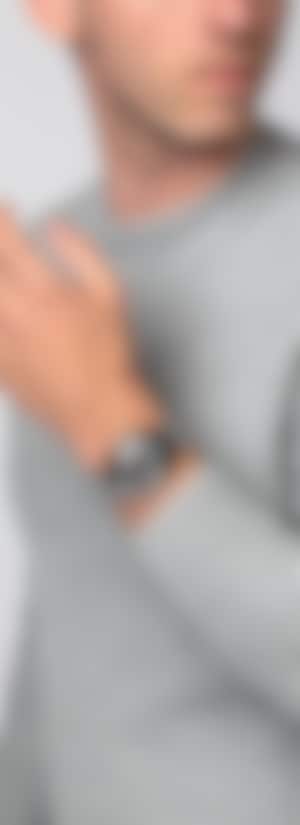 與眾不同的DiaStar鑽星系列創始型腕錶,直徑38毫米,防水深度可達100公尺。這枚美麗的腕錶以平行條紋切面的藍寶石水晶玻璃錶鏡為底,採用超亮碳化鈦金屬陶瓷紋飾,搭配拋光處理過的角度和細節點綴,鑲嵌在互相搭配的單色精鋼錶殼上。腕錶配備深灰色拉絲錶盤,可雙向旋轉、具有銠色Super-LumiNova®夜光塗層指針,以及與錶盤顏色一致的日期顯示。腕錶內部的Rado瑞士雷達表R764型自動機械機芯,搭載防磁Nivachron™游絲,可提供80小時動力儲存。配有經拋光和拉絲處理的精鋼錶鏈。