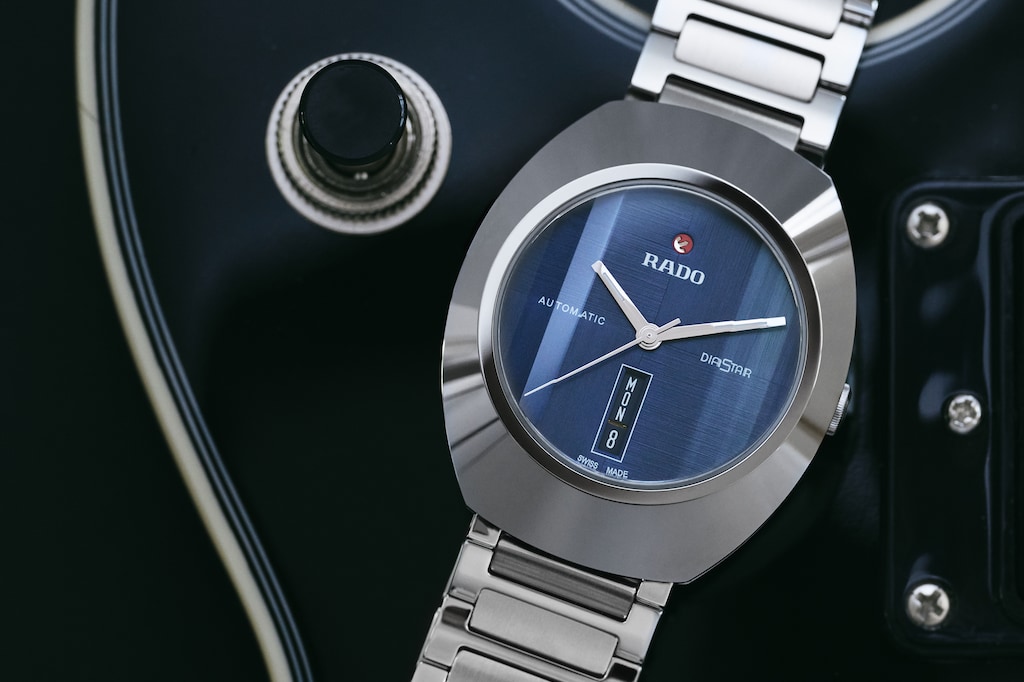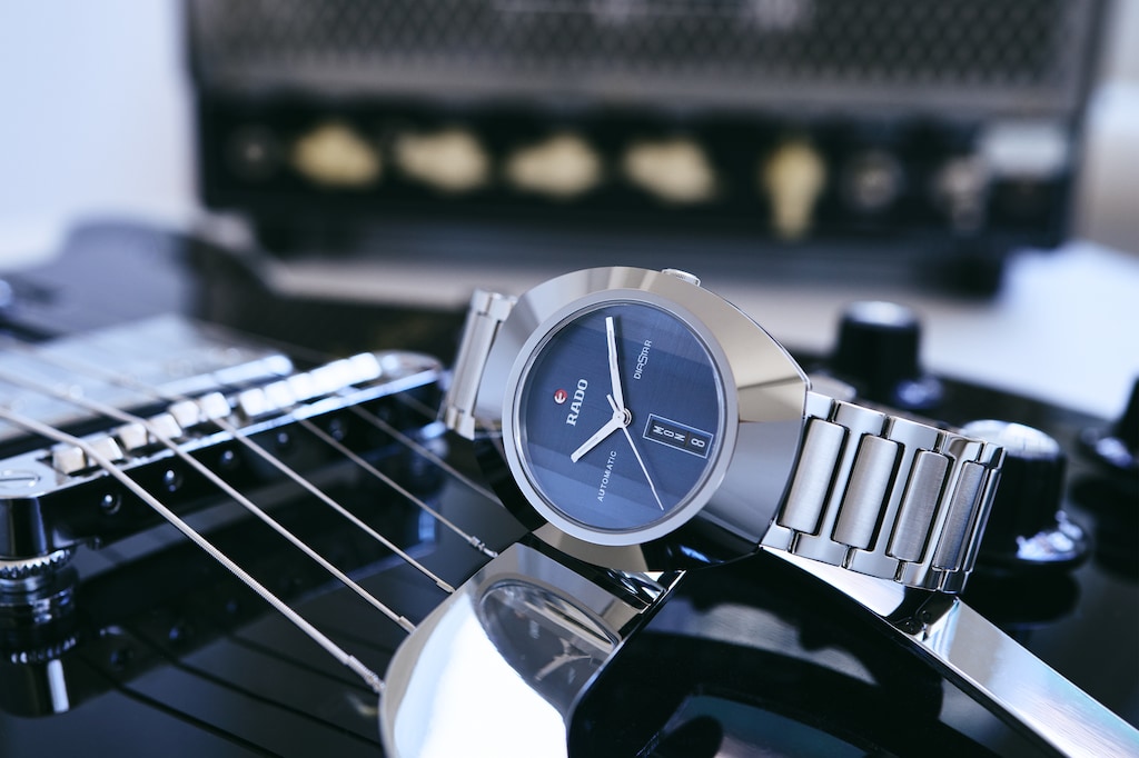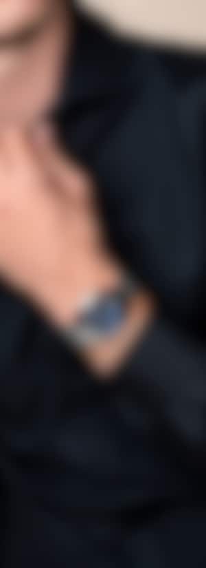 與眾不同的DiaStar鑽星系列創始型腕錶,直徑38毫米,防水深度可達100公尺。這枚美麗的腕錶以平行條紋切面的藍寶石水晶玻璃錶鏡為底,採用超亮碳化鈦金屬陶瓷紋飾,搭配拋光處理過的角度和細節點綴,鑲嵌在互相搭配的單色精鋼錶殼上。腕錶配備藍色拉絲錶盤,可雙向旋轉、具有銠色Super-LumiNova®夜光塗層指針,以及與錶盤顏色一致的日期顯示。腕錶內部的Rado瑞士雷達表R764型自動機械機芯,搭載防磁Nivachron™游絲,可提供80小時動力儲存。配有經拋光和拉絲處理的精鋼錶鏈。