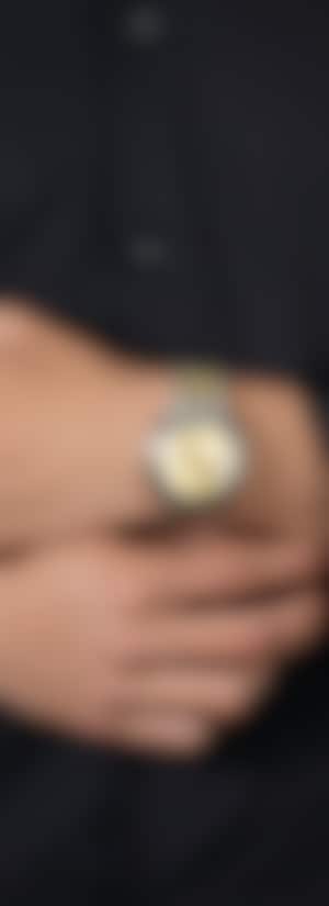 與眾不同的DiaStar鑽星系列創始型腕錶,直徑38毫米,防水深度可達100公尺。這只美麗的腕錶以平行條紋切面的藍寶石水晶錶鏡為底,採用超亮Ceramos™金屬陶瓷紋飾,搭配拋光處理過的角度和細節點綴,鑲嵌在互相搭配的單色精鋼錶殼上。腕錶配備金色拉絲錶盤,可雙向旋轉、具有白色Super-LumiNova®夜光塗層的銠色指針,以及白色日期及星期顯示,搭載Rado瑞士雷達表R764型自動機械機芯,具備80小時動力儲存和防磁Nivachron™擺輪游絲。錶鏈由拋光與拉絲精鋼製成,中部鏈節採用黃金色PVD塗層。