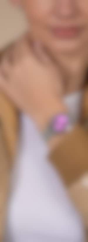 瑞士製錶工藝與開創性創意的經典體現。Rado瑞士雷達表DiaStar鑽星系列腕錶專為敢於探索非凡的品味人士而量身打造。 30毫米錶殼,鑲嵌拋光鉑金色Ceramos™金屬陶瓷錶圈,與拋光精鋼中層錶殼和諧相融,防水性能高達10巴(100米)。 雙向拉絲紫色錶盤在光影間展現優雅魅力,襯托出經典的銀色可擺動錨型標誌,並於6點鐘位置精準嵌入日期窗。銠色指針覆有白色Super-LumiNova®塗層,確保任何光線條件下的清晰讀時。此精緻錶盤由垂直內側刻面防反光塗層藍寶石水晶錶鏡守護。 腕錶搭載R586自動機械機芯,經五個方位精準調校,配備Nivachron™防磁游絲,提供卓越精準度與48小時動力儲存。