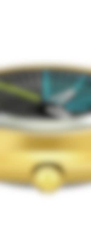 鑽星系列自動腕錶 X Tej Chauhan特別版的黃色金色 PVD Ceramos™ 錶圈不僅僅是一個細節,而是純粹的創新。這種輕盈且防刮的材質透過陶瓷與金屬合金的融合打造而成,一種超前的製造技術,確保兩種材質無縫結合,同時保留高科技陶瓷的卓越硬度和金屬的結構強度。