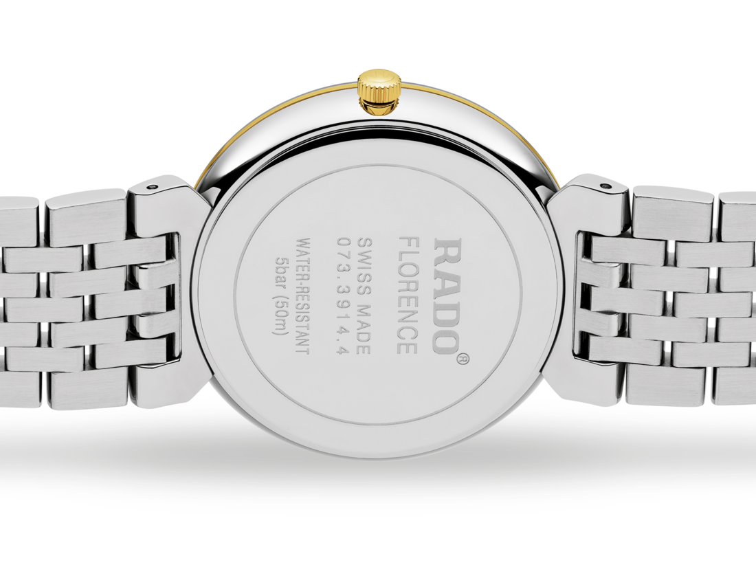 Rado瑞士雷達表Florence佛羅倫薩系列的和諧設計,令人想起腕錶命名城市的典雅圓頂和鐘塔。憑藉優質的石英機芯、創新的Rado瑞士雷達表無框金屬化藍寶石水晶玻璃錶鏡和鑽石的永恆魅力,這是一款經得起時間考驗的瑞士製造腕錶。鍍銠指針優雅滑行於4顆足瓣切割鑽石之上,這四顆鑽石分別位於3點、6點、9點和12點鐘的位置。同時,在這款全新Rado瑞士雷達表Florence Classic佛羅倫斯經典系列中,著名的鑲鑽標誌強勢回歸,向世人展示著其閃亮存在。