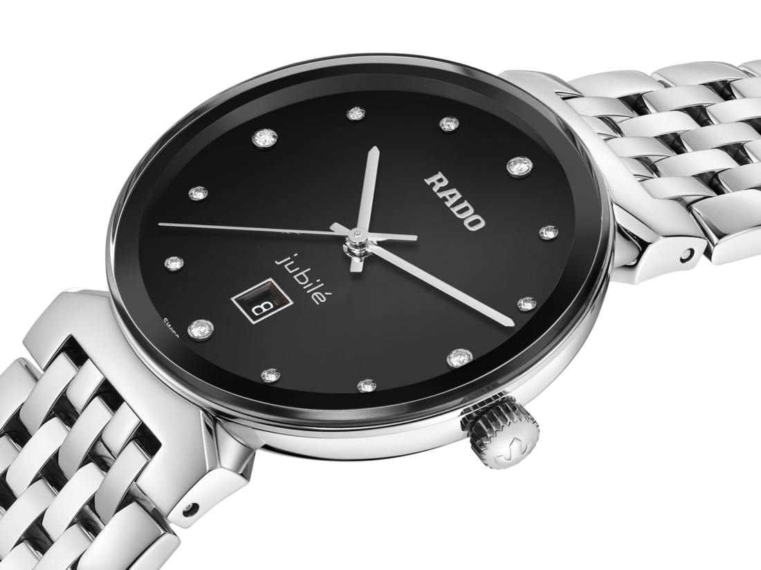 Rado瑞士雷達表Florence佛羅倫斯經典系列的和諧設計,令人想起腕錶命名城市的典雅圓頂和鐘塔。這款30毫米腕錶擁有無邊框弧形斜面藍寶石水晶玻璃錶鏡。錶殼、錶圈、錶冠和錶鏈均採用拋光精鋼製成。黑色太陽紋錶盤鑲嵌著12顆鑽石,印有「jubilé」標誌,與銠色指針完美搭配。搭載三針R079型石英機芯,讓腕錶具有更加優異的精度和抗震性。腕錶防水性能達50公尺。此外,另有大尺寸可供挑選,是理想的情侶款腕錶。