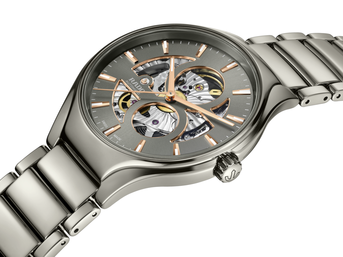 體驗Rado瑞士雷達表True真我系列開芯腕錶卓越設計與精湛材質的完美融合。這款超卓非凡的腕錶採用令人目眩神迷的開芯設計,佩戴者能夠巧妙地欣賞Rado瑞士雷達表R734型自動機芯的精妙細節,并體會純粹的製錶藝術。腕錶搭載Nivachron™防磁游絲,擁有80小時動力儲存。腕錶擁有拋光電漿高科技陶瓷高科技陶瓷整體式構造錶殼和錶冠,並選用鈦金屬底蓋,且底蓋所搭配的藍寶石水晶,可讓人輕鬆欣賞機芯的風采魅力。腕錶採用灰色太陽紋錶盤,搭配玫瑰金色斜面以及灰色印紋分鐘圈。這款灰色腕錶搭配拋光電漿高科技陶瓷錶鏈與鈦金屬三折式錶扣,完美襯托,恰到好處。腕錶防水深度達50公尺。Rado瑞士雷達表True真我系列開芯腕錶,專為像你這樣鍾情於現代風格腕錶的時尚男女所設計,而時計蘊含的永恆魅力與風格,令腕錶成為當之無愧的紀念臻品。