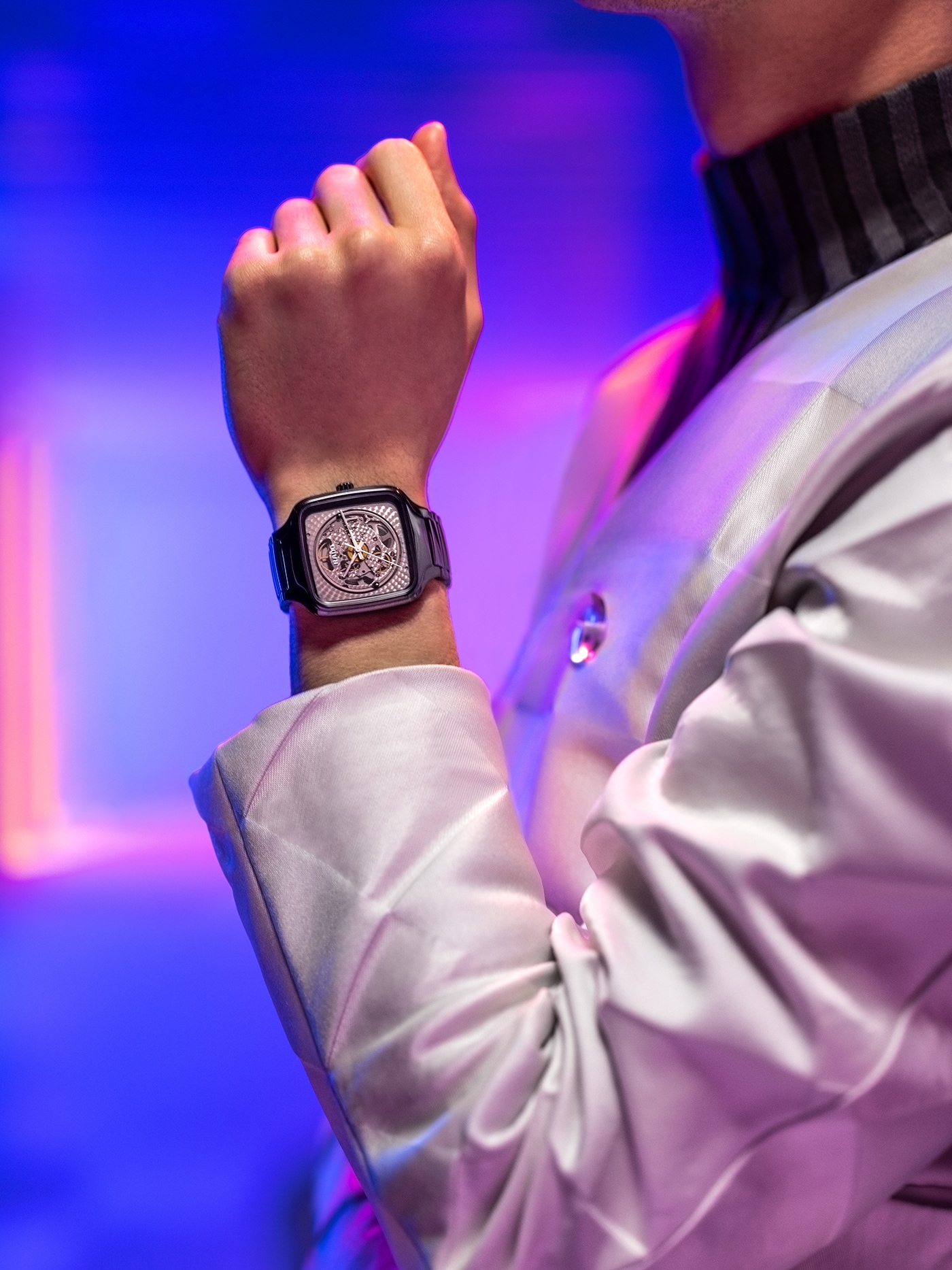 Rado瑞士雷達表True Square真我系列x森永邦彥合作款腕錶,由品牌與富有遠見的日本時裝設計師森永邦彥共同設計,讓您體驗藝術與精準的完美契合。這款超卓非凡的時計,搭載絕妙的Rado瑞士雷達表R734型自動機械機芯,擁有80小時動力儲存和防磁Nivachron™擺輪游絲。與機芯內架一樣,腕錶亦飾以圓形米粒圖案。拋光黑色高科技陶瓷的38毫米錶殼與錶冠,散發著時尚現代的迷人魅力。選用雙面防反光平面藍寶石水晶錶鏡,令腕錶擁有出色的清晰度。配備光致變色效果的透明錶盤,可使機芯現身或隱形。在陽光(紫外線)照射下,這款True Square真我系列腕錶的錶盤會變暗。但隨著太陽西下,錶盤的陰影會逐漸被灰色取代,直至透明。銀色指針搭配白色飾面和白色Super-LumiNova®夜光塗層,除了確保清晰讀時,更讓腕錶多了幾分優雅。拋光黑色高科技陶瓷錶鏈舒適耐用,令腕錶更臻完美。